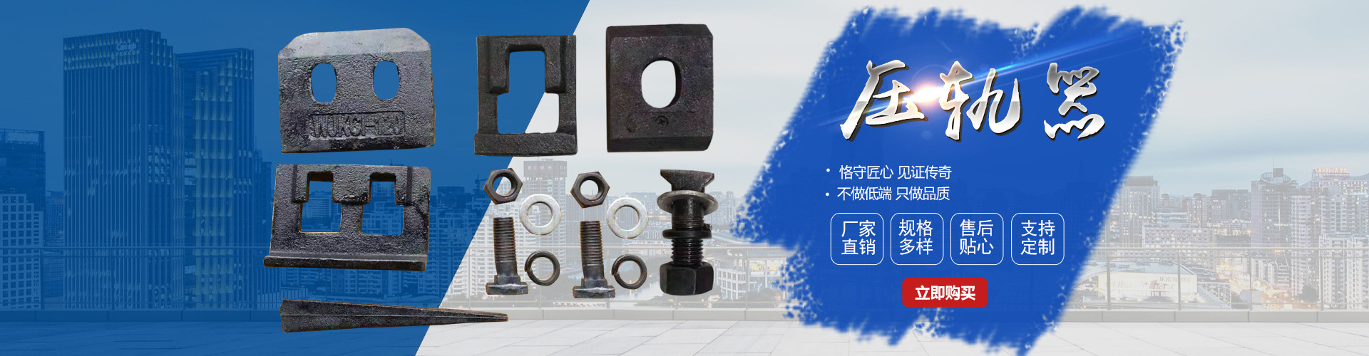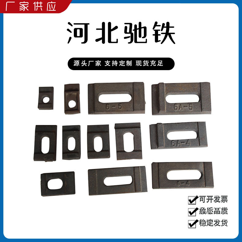 主要產(chǎn)品:鐵路配件、行車配件、工礦配件、魚尾板、道釘、壓軌器、軌道壓板、軌距拉桿、護軌扣板、T型螺栓、魚尾螺栓、彈條、軌距擋板
